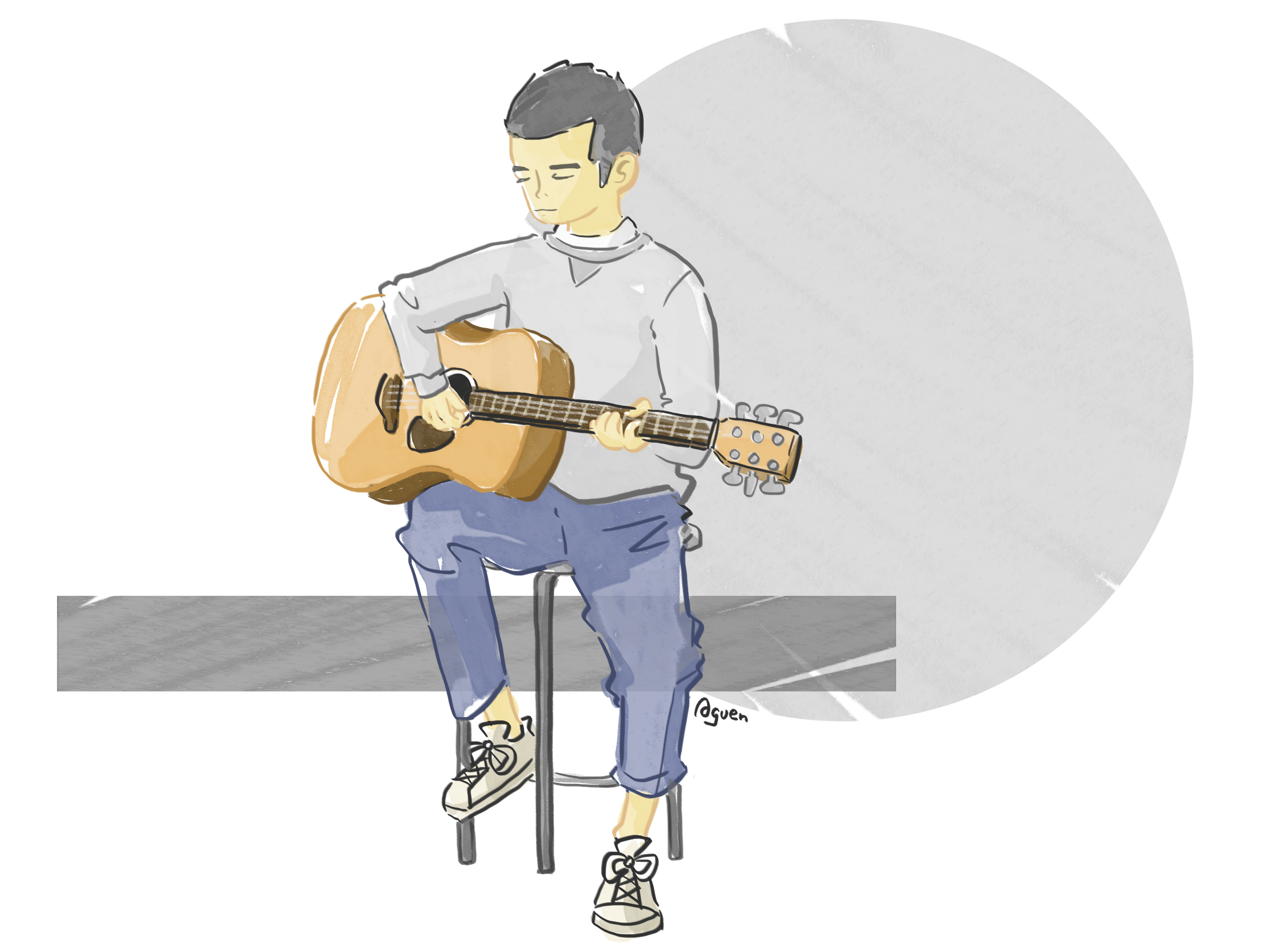 從此,男孩開始了與吉他一同前進的生活。